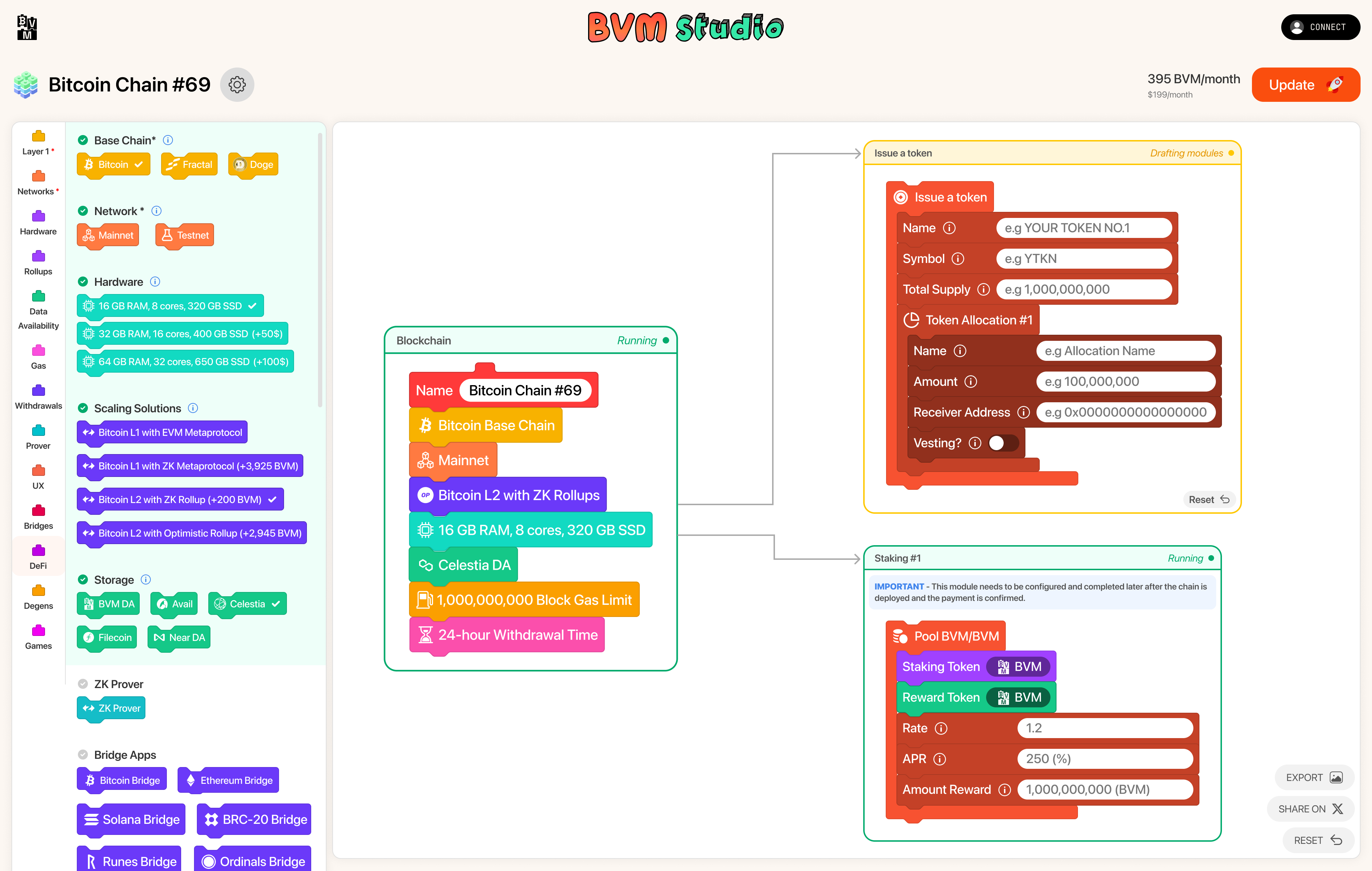 Add dapps built by BVM devs (and soon third-party devs) to your Bitcoin chain with [BVM Studio](https://bvm.network/studio). Use the same no-code, visual, drag-and-drop user experience BVM Studio provides.